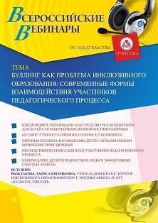 Вебинар Буллинг как проблема инклюзивного образования: современные формы взаимодействия участников педагогического процесса