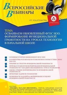 Вебинар Осваиваем обновленный ФГОС НОО. Формирование функциональной грамотности на уроках технологии в начальной школе