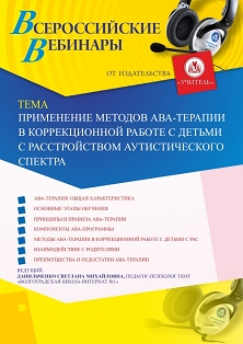 Вебинар Применение методов АВА-терапии в коррекционной работе с детьми с расстройством аутистического спектра