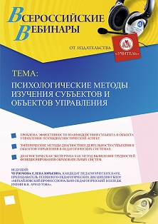 Вебинар Психологические методы изучения субъектов и объектов управления